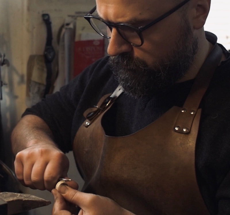 Maciek using traditional methods to hand-chase solid 925 silver using traditional, hundreds year old tools.